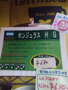 4月の売切れ御免は、ホンジュラスHG。近年、価格上昇の珈琲豆の中ではリーズナブルな珈琲豆を更に大特価で提供します。